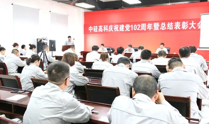 2023年6月28日上午,中硅高科在2#辦公樓三樓會議室召開慶祝建黨102周年暨總結表彰大會。會議由副董事長、黨委副書記、總經(jīng)理萬燁主持。董事長張合文作講話,黨委書記侯曉東作總結報告。